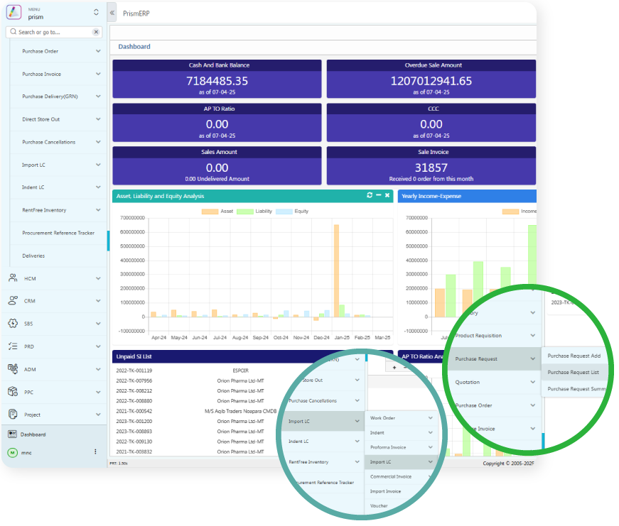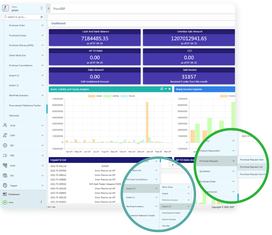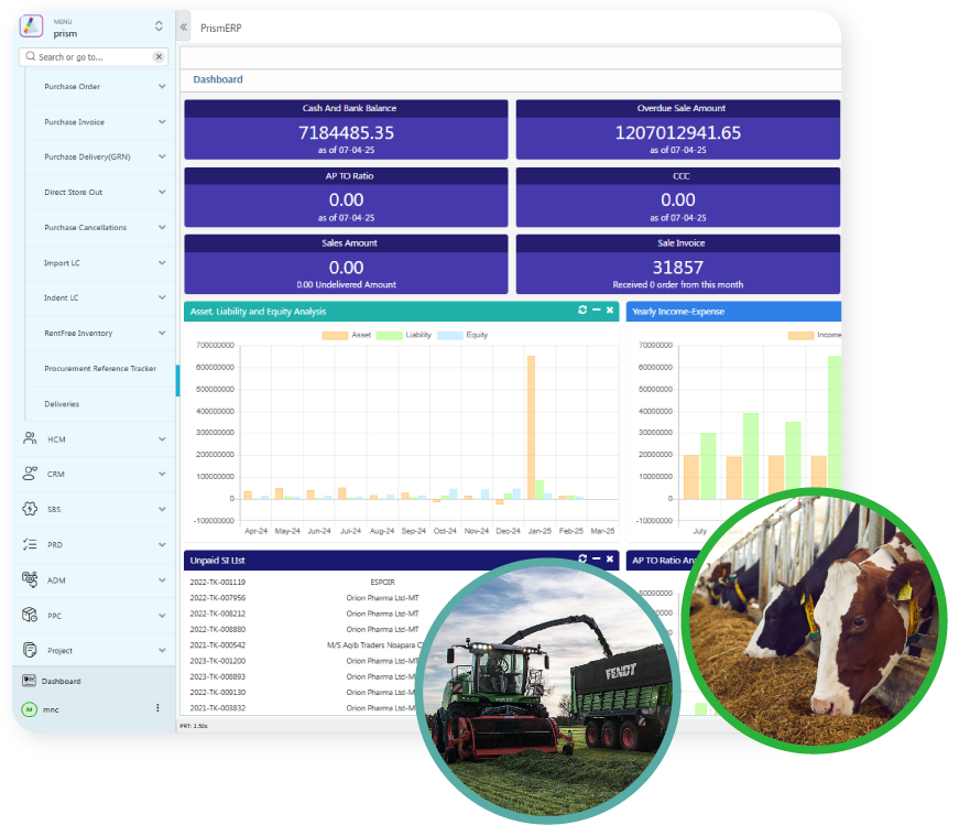 PrismERP’s automated features allows an agro industry to ensure the financial transparency by allowing automatic calculation of each transaction.